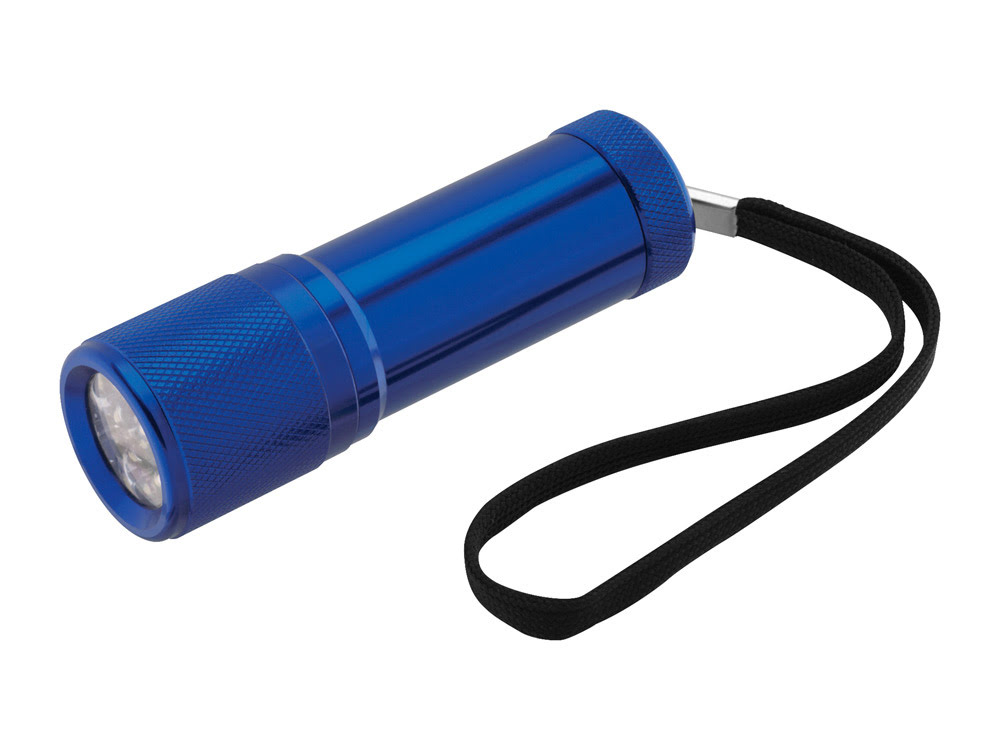 Подарочный фонарик Mars. Фонарик с 9 белыми светодиодами, кнопкой вкл/выкл и наручным ремешком. Включает подарочную коробку с подкладкой из материала EVA и 3 батарейки размера AAA. Алюминий. 143.