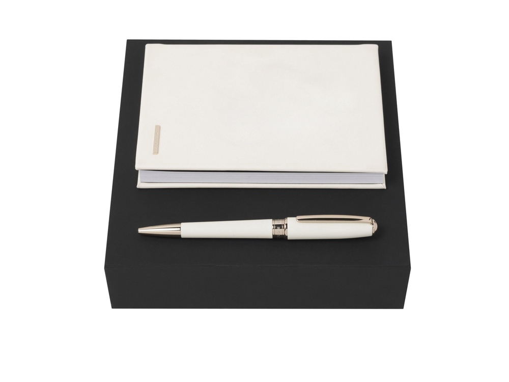 Подарочный набор: блокнот А6, ручка шариковая. Hugo Boss, кремовый, золотистый, pu, латунь/лак