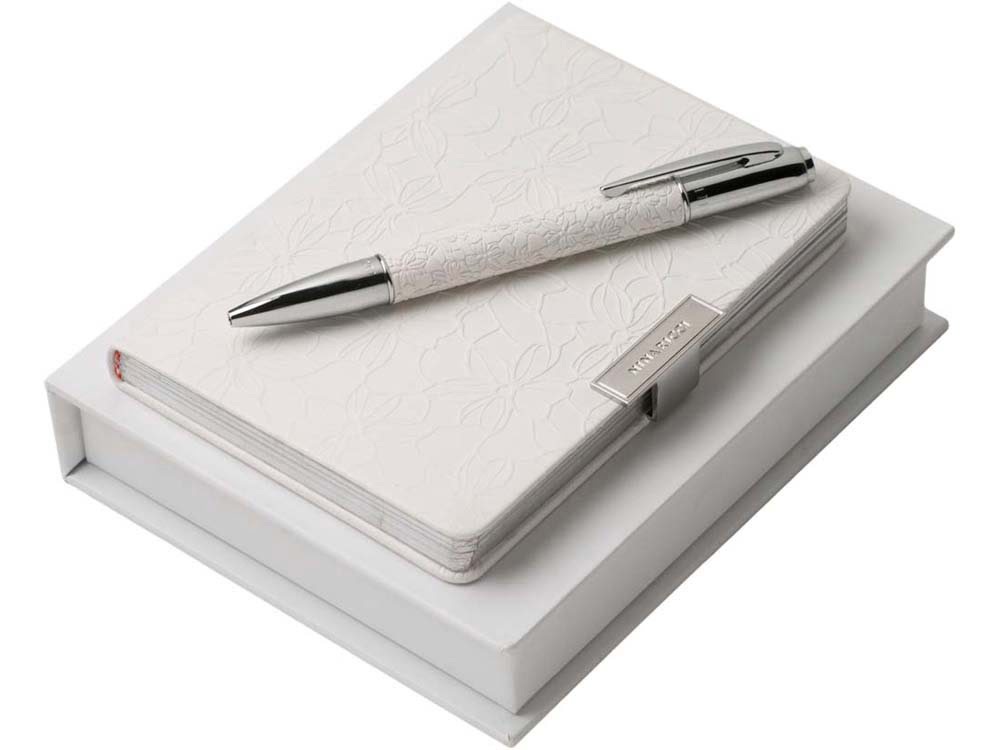 Подарочный набор Michelle: дизайнерский блокнот А6, шариковая ручка. Nina Ricci (Ou), белый/серебристый, искусственная кожа/латунь