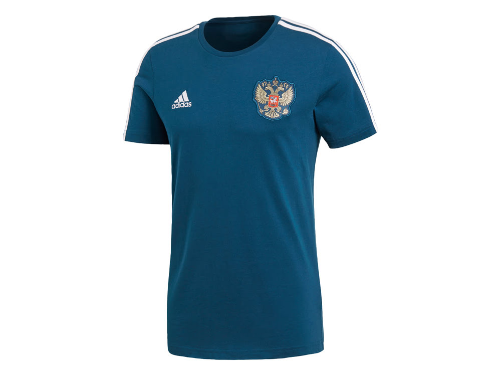 !!! Внимание, любое нанесение на данную продукцию запрещено. !!! Футболка РОССИЯ 3-STRIPE станет отличным подарком для настоящих футбольных болельщиков. Модель классического кроя с более широкой основной частью. Прямой силуэт. Футболка имеет рифленый круглый ворот, и лицевой стороне она украшена гербом России. На товаре также имеются легендарные элементы стиля adidas - три полоски на рукавах и логотип adidas на груди. Покажите свою поддержку в этой легкой и удобной футболке из 100% хлопка!
