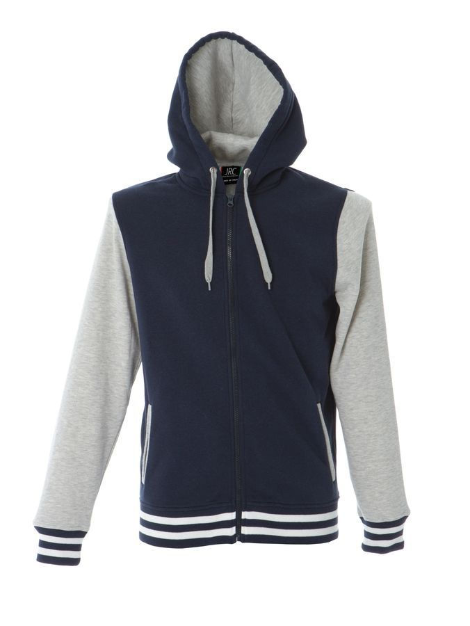 LOS ANGELES Толстовка, с капюшоном, на молнии, колледж стиль, темно-синий / серый меланж, серый, синий, хлопок 25%, полиэстер 75%