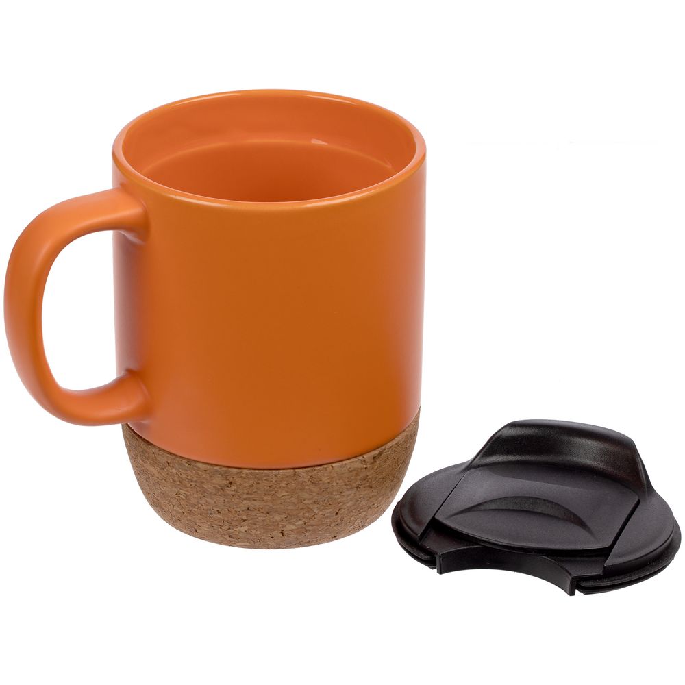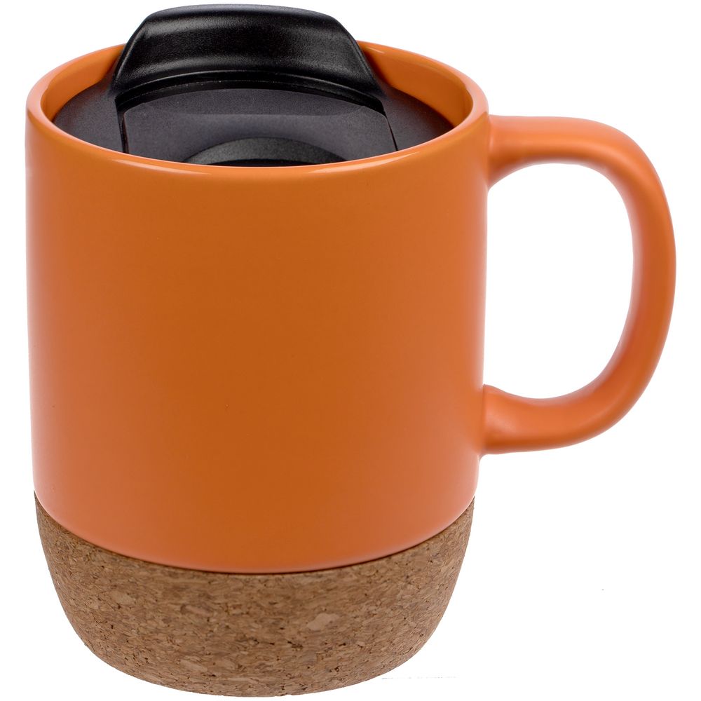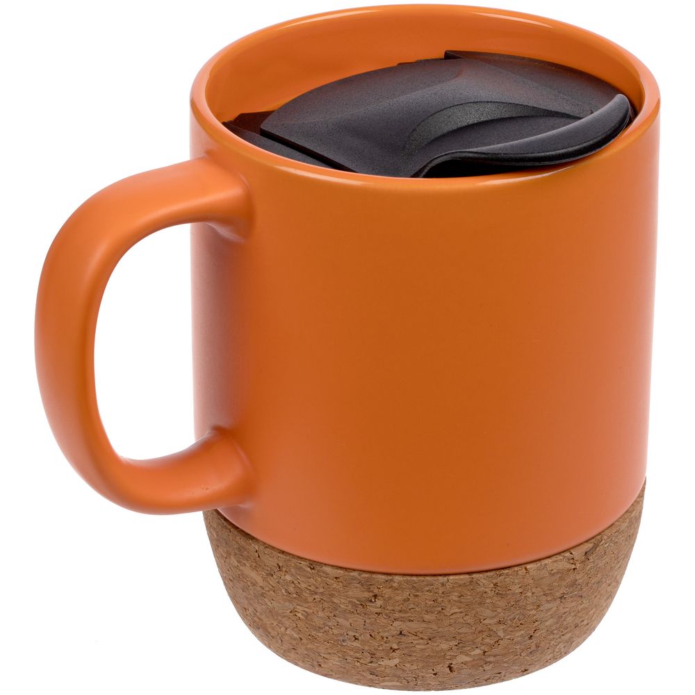 Кружка с пробковой подставкой Corky Walk, оранжевая, , каменная керамика