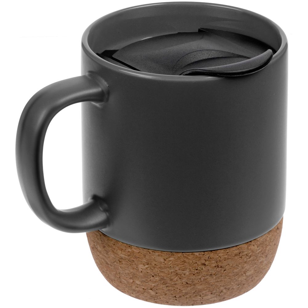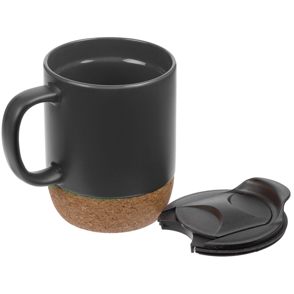 Кружка с пробковой подставкой Corky Walk, серая, , каменная керамика