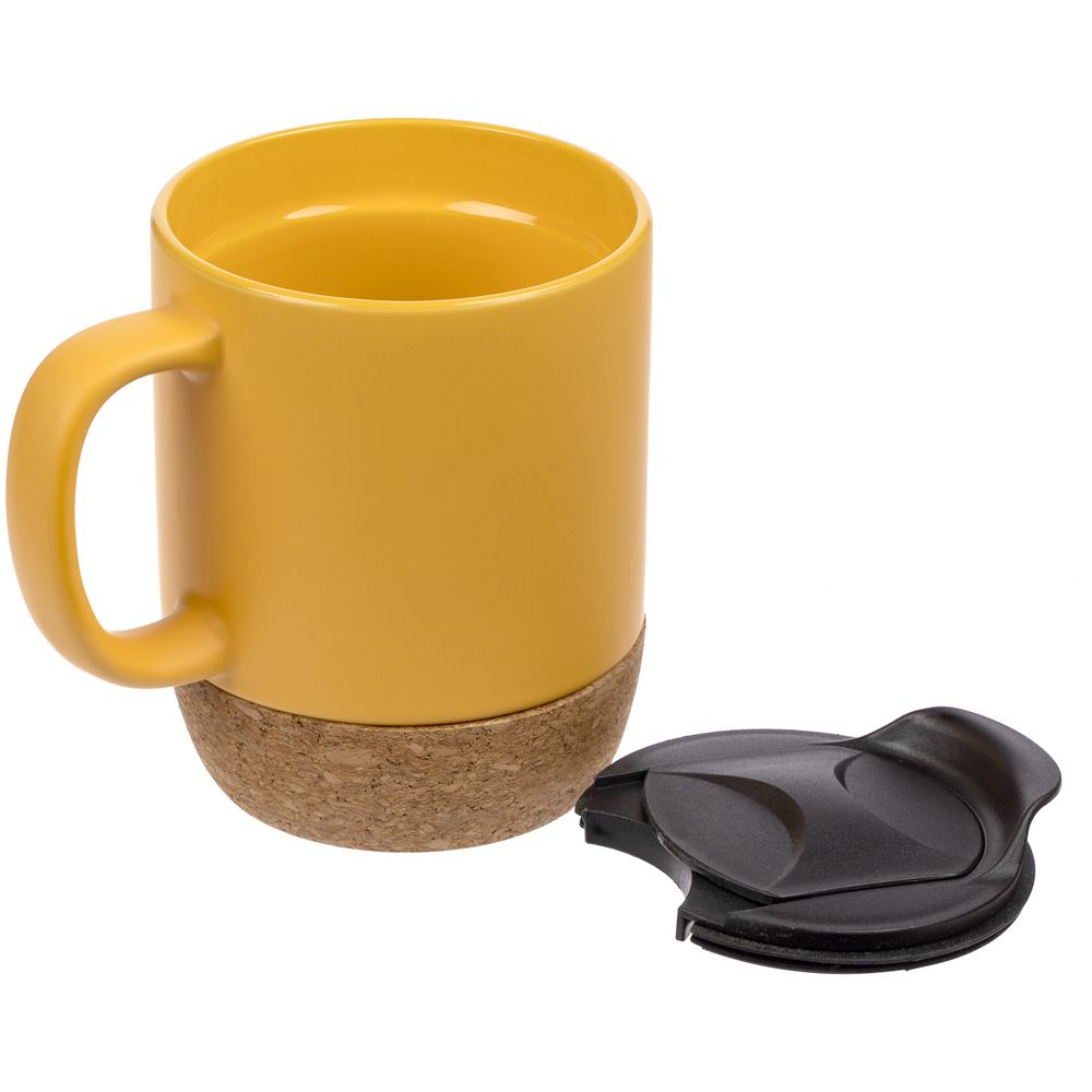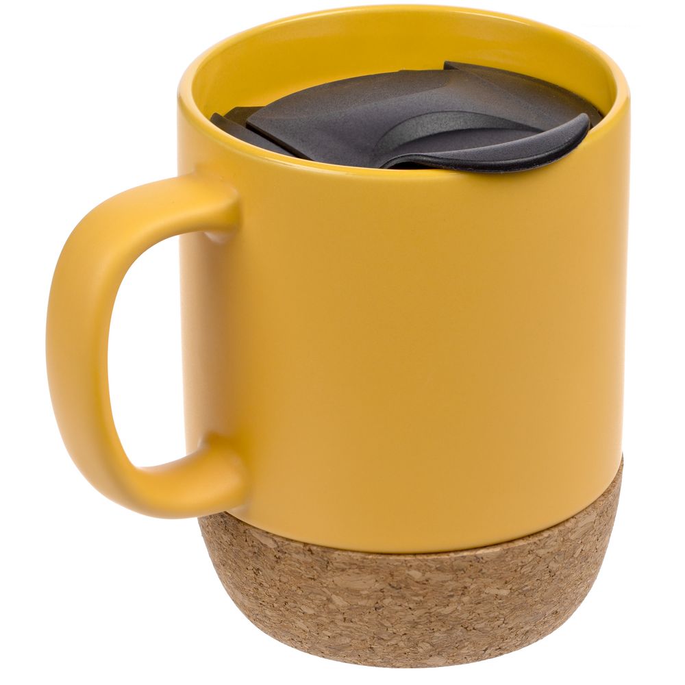 Кружка с пробковой подставкой Corky Walk, желтая, , каменная керамика