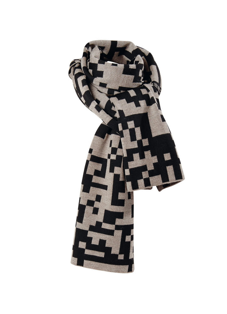 Шарф QR-code , песочный/черный, , шерсть 100%