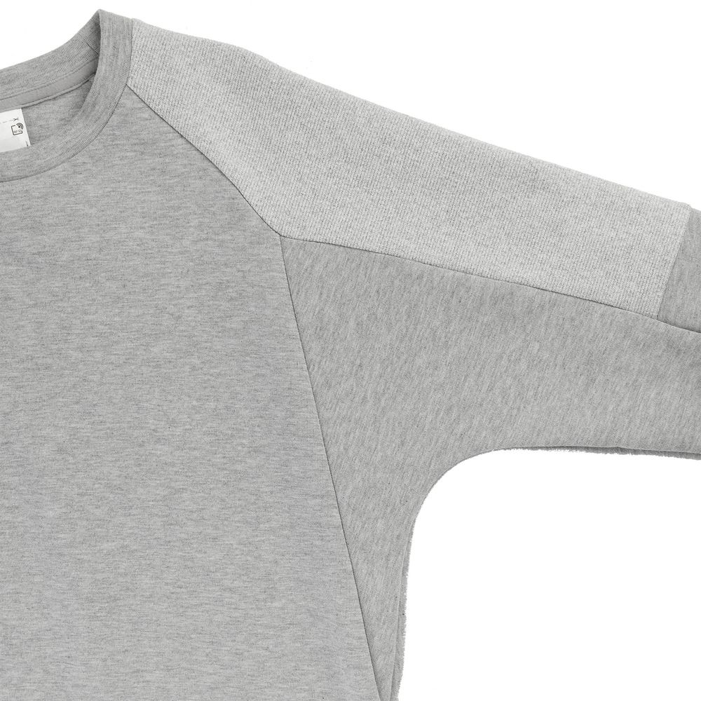 Толстовка с удлиненной спинкой, круглым вырезом и рукавом реглан.
