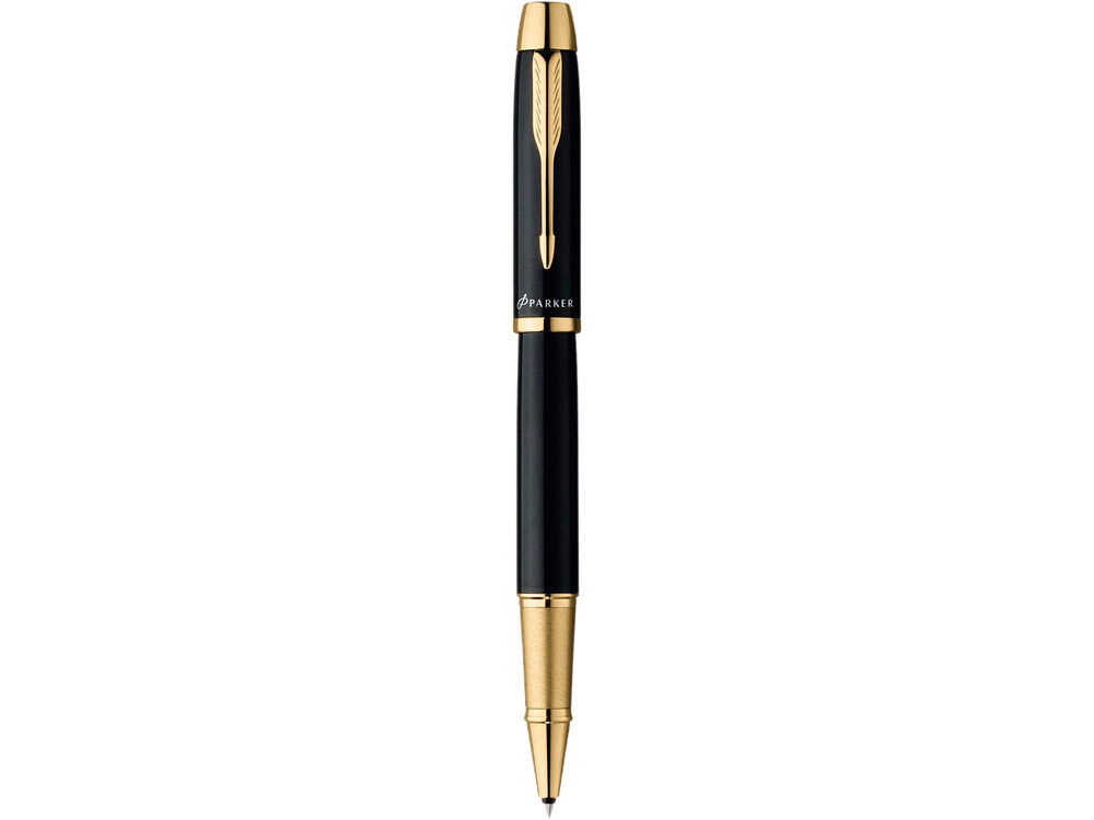 Ручка роллер Parker модель IM Black GT, черный/золотистый, черный/золотистый, ювелирная латунь/лак/позолота 23К