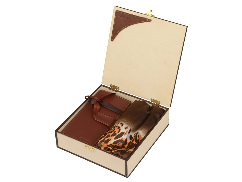 Набор: платок/шарф шелковый, дамское портмоне. Leather North, коричневый, платок/шарф- 60% поиэстер, 40% шелк, портмоне- натуральная кожа