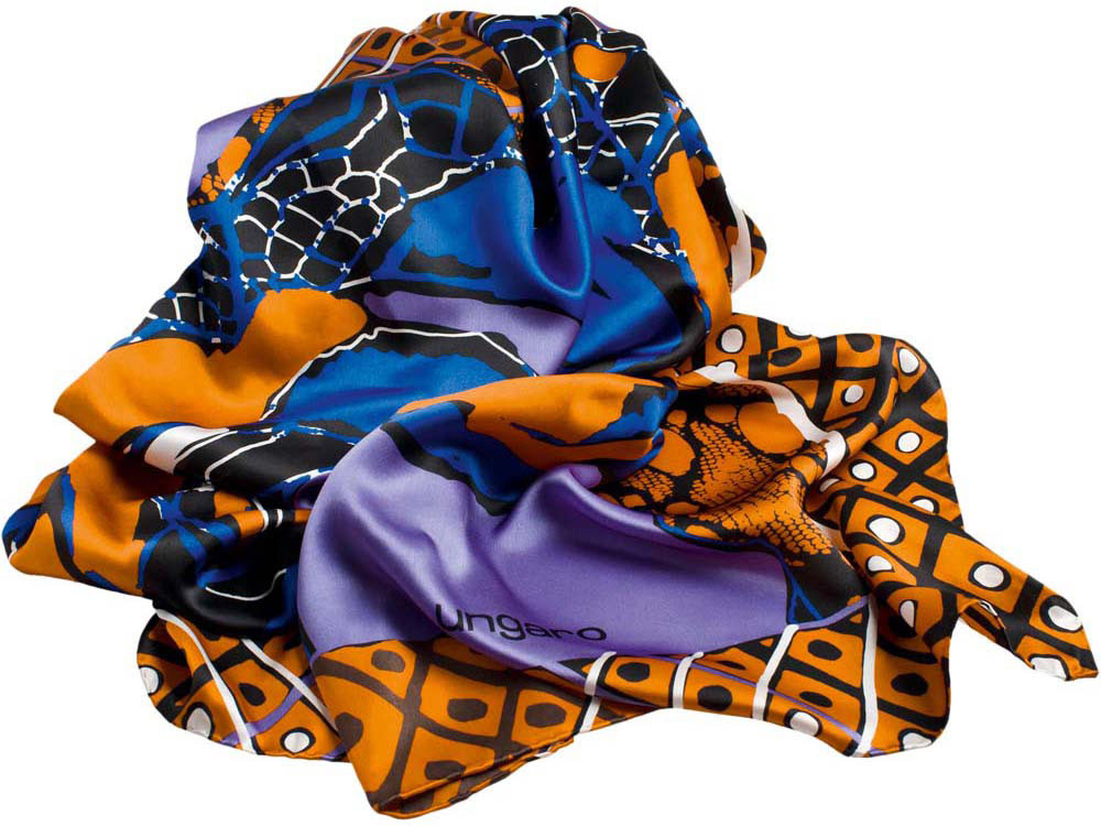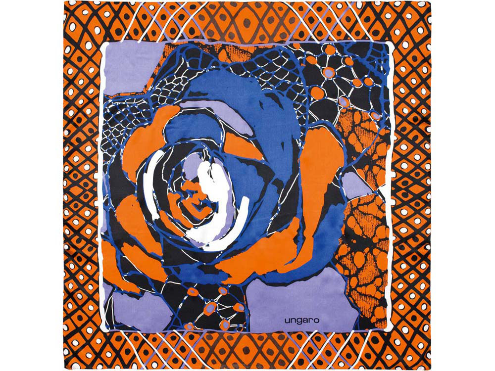 Платок шелковый Ungaro модель «Rosa», оранжевый/синий, 100% шелк
